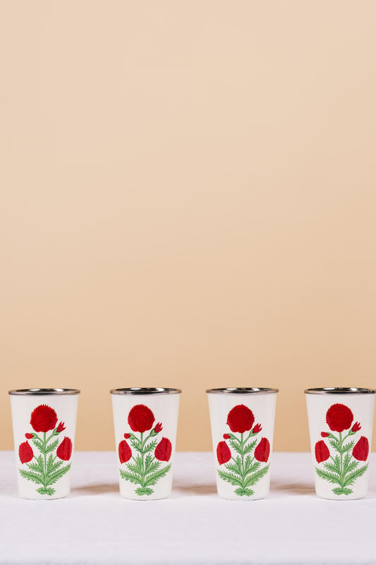 Red Poppy Tall Enamelware Tumbler Set of 4