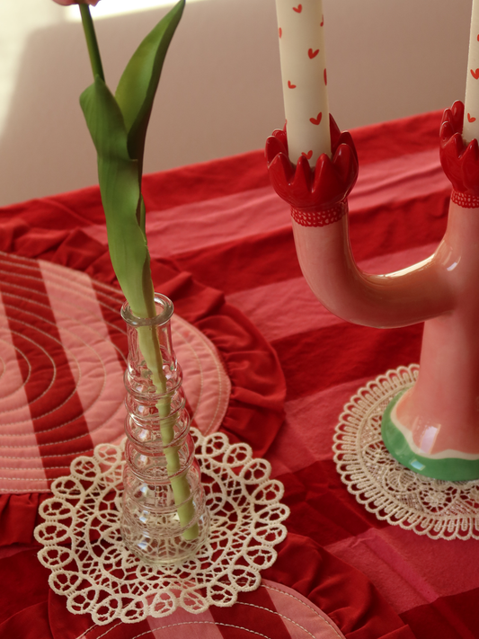 Pink Heart Lace Table Runner