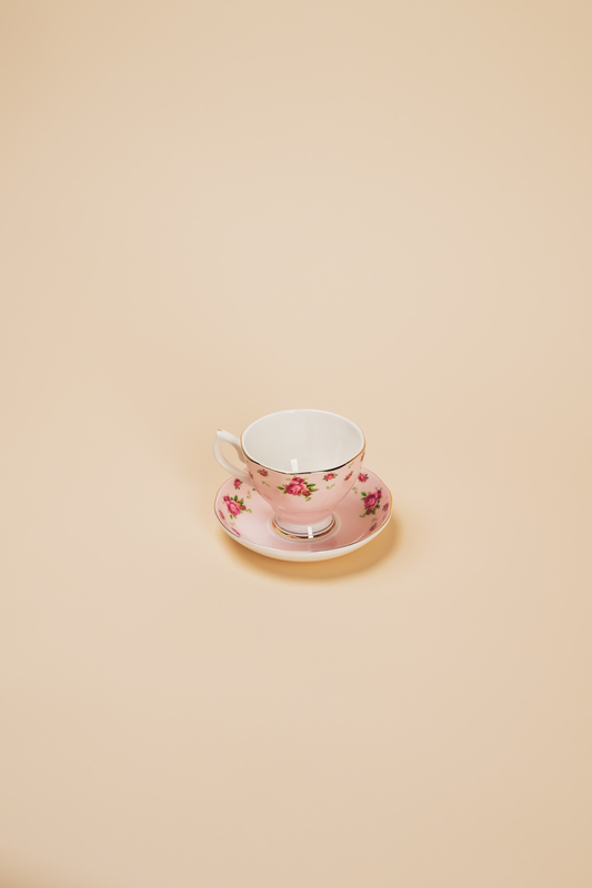 Pink Bone China Teacup with Saucer Set of 4