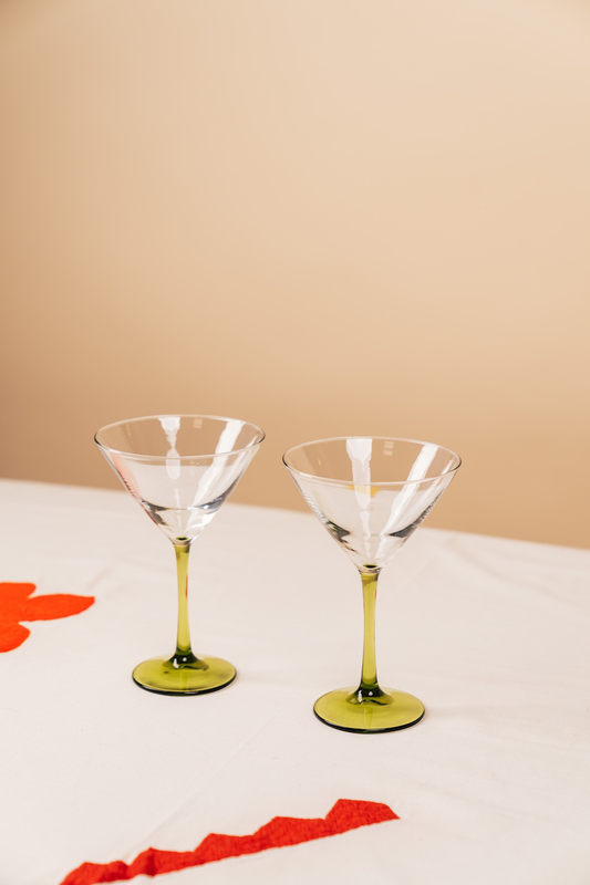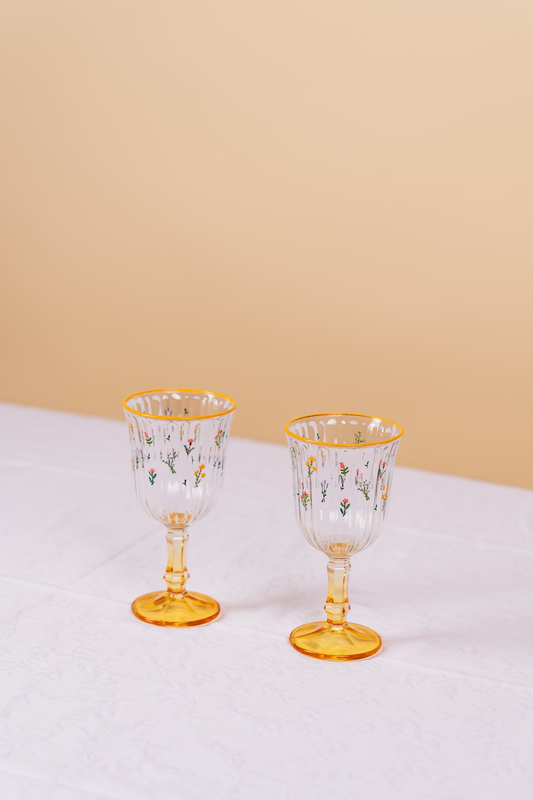 Yellow Botanical Stemmed Wine Glass Set of 2